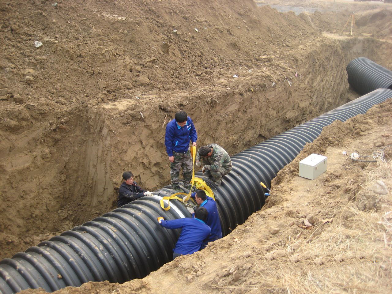 • 大型污水處理廠pe鋼帶增強螺旋波紋管施工現場